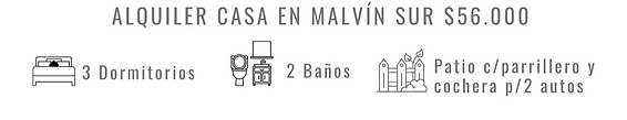 Se alquila casa en Malvin. Casa Ph totalmente independiente. Consta de 2 plantas. En Pb living comedor, baño, cocina y Patio con parrillero. En PA tiene 3 dormitorios y baño completo. Consta de garage para 2 autos. Fue toda reciclada desde baño cocina a nuevo, aberturas nuevas en aluminio, eléctrica. Pronta para ingresar en Enero. Coordine su visita al 094932691.